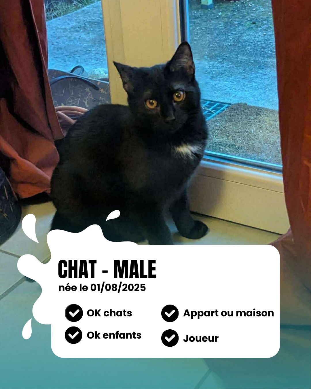 Plutôt craintif et timide, c’est un chaton très doux. Curieux et très joueur il aime se prélasser dans des endroits calmes et douillets pour récupérer.