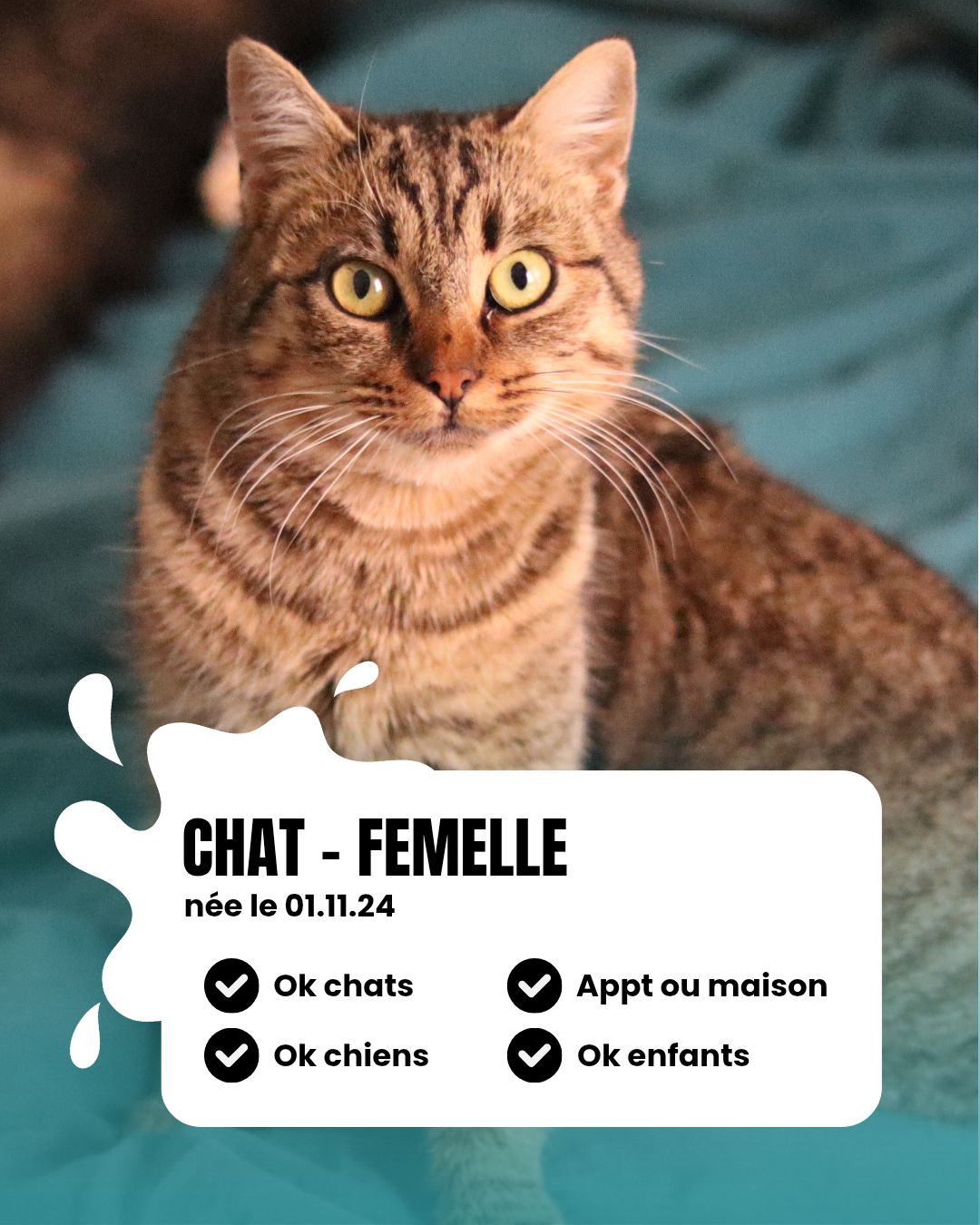 Cette adorable minette de 1 an est très sociable et en recherche d’une famille pour la vie !